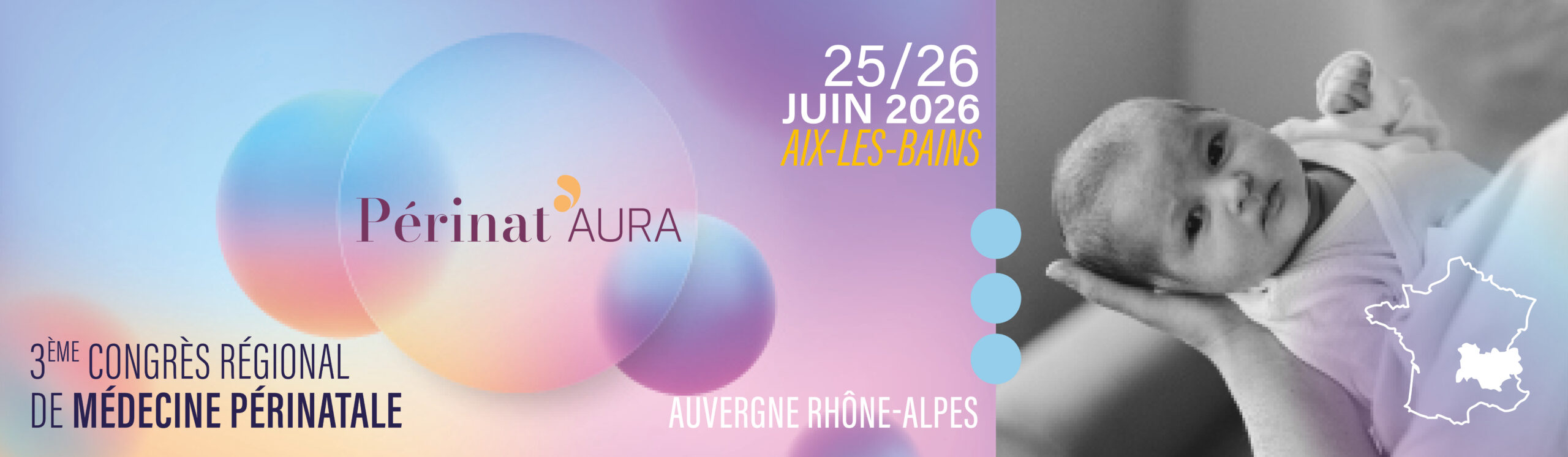 Nous sommes heureux de vous convier à la troisième manifestation regroupant tous les acteurs de la périnatalité en région Auvergne Rhône Alpes : PERINAT’AURA, une manifestation unique, rassemblant les professionnels de la médecine fœtale, de la génétique, du dépistage néonatal, de l’obstétrique, de la néonatologie et du suivi des enfants vulnérables.